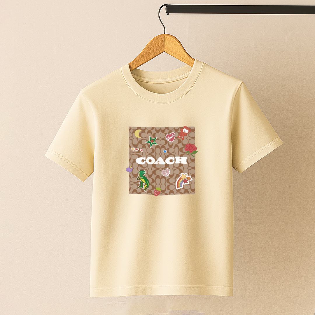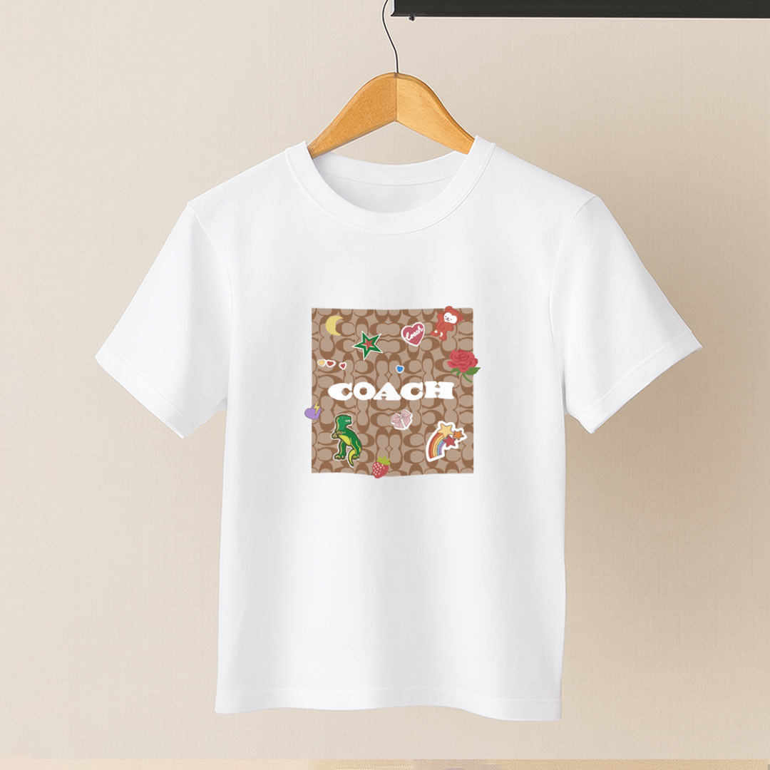 طرح تیشرت کوچ مربع مشکی فانتزی دایناسور، رنگین کمان، ماه و ستاره COACH